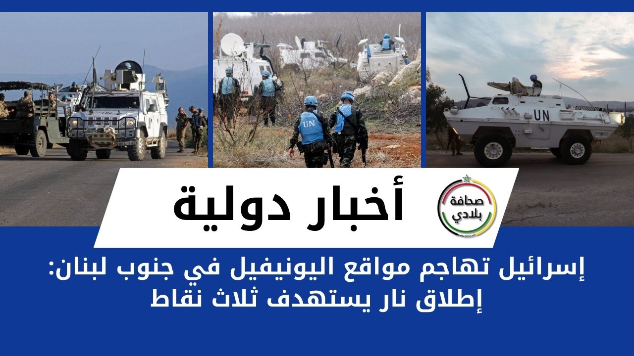 أعلن مصدر بالأمم المتحدة أن القوات الإسرائيلية فتحت النار على ثلاثة مواقع تابعة لليونيفيل اليوم الخميس، دون تحديد نوع النيران.