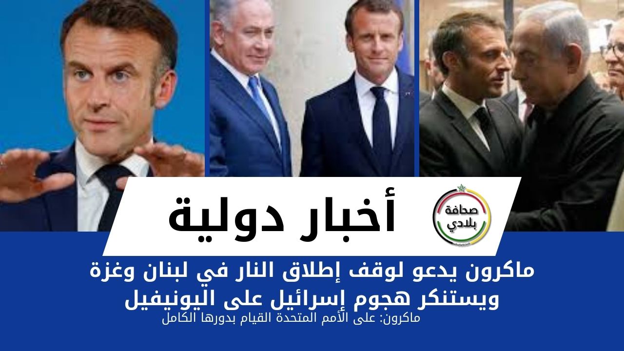 خلال مكالمة هاتفية مع رئيس الوزراء الإسرائيلي بنيامين نتنياهو، شدد ماكرون على ضرورة أن تلعب الأمم المتحدة دورها الكامل في جنوب لبنان. هذا الدور مهم لعودة المدنيين إلى منازلهم بأمان على الحدود بين لبنان وإسرائيل. كما طالب نتنياهو بالحفاظ على البنية التحتية وحماية المدنيين. أكد على ضرورة التوصل إلى وقف إطلاق النار سريعاً لتجنب مزيد من التصعيد.
