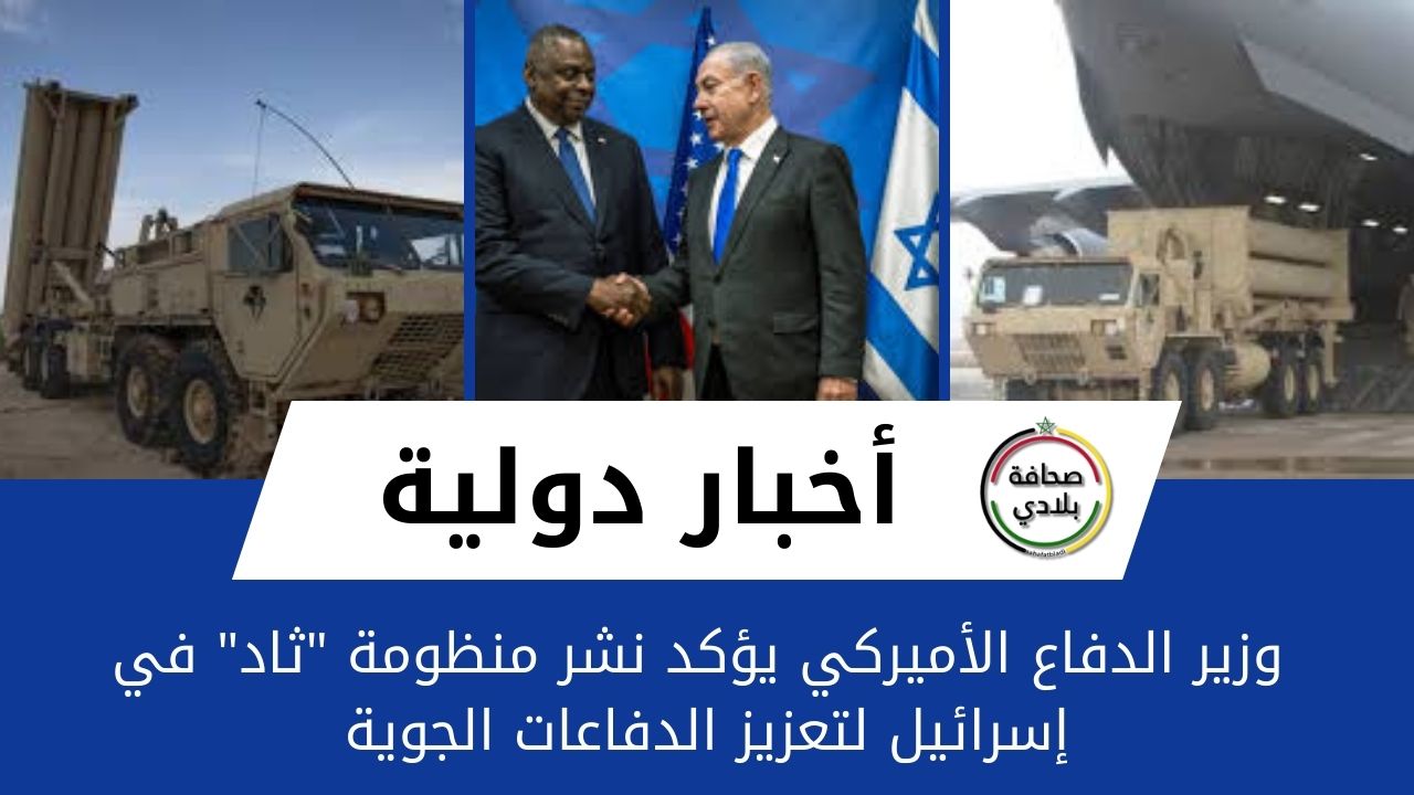 أعلن وزير الدفاع الأميركي لويد أوستن أن الجيش الأميركي نشر منظومة “ثاد” (منظومة الدفاع الصاروخي للارتفاعات العالية) في إسرائيل. في هذا السياق، أكد أوستن أن المنظومة “في مواقعها” حاليًا. يُعتبر هذا النشر خطوة حيوية لتعزيز الدفاعات الجوية الإسرائيلية.