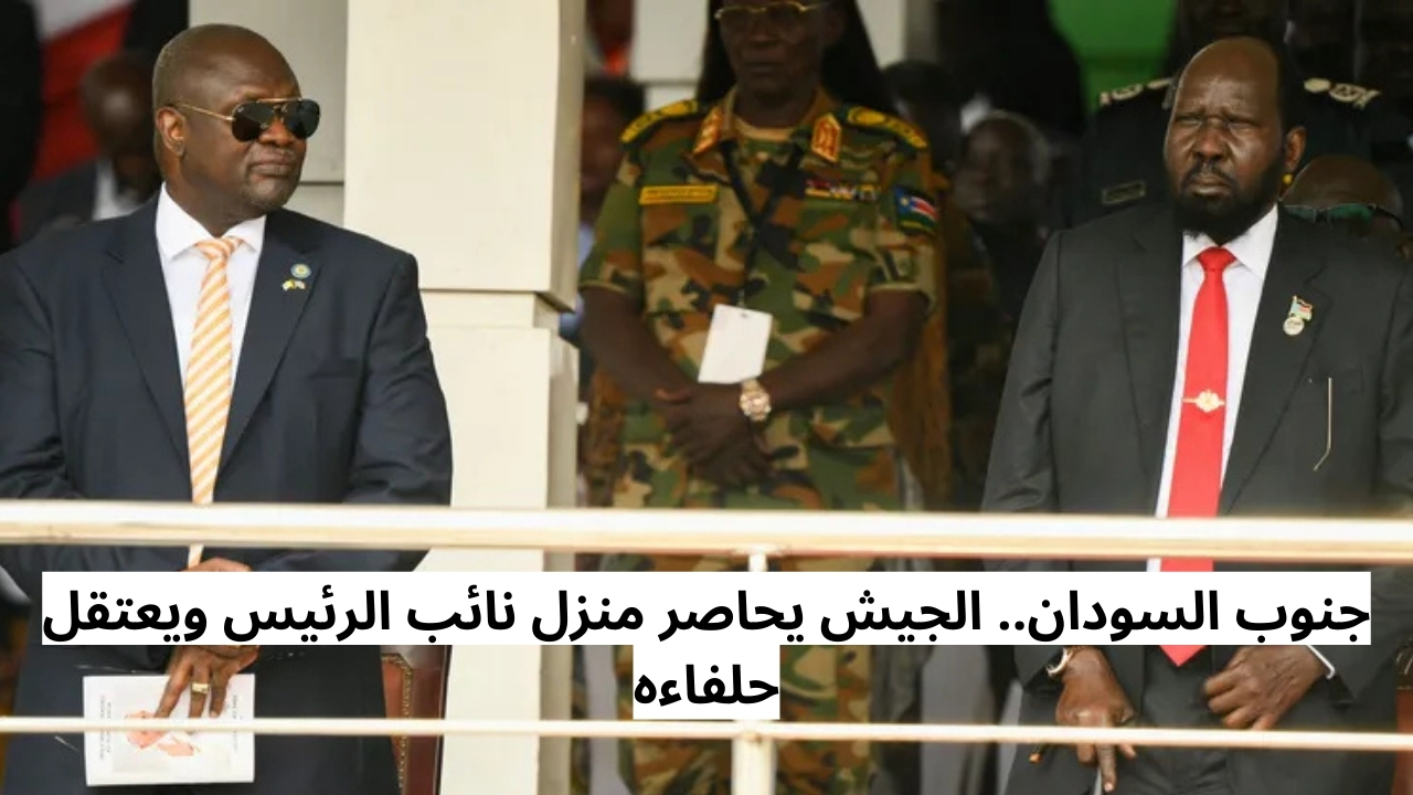 في تصعيد درامي للتوترات في جنوب السودان، حاصرت قوات حكومية منزل نائب الرئيس ريك مشار في العاصمة جوبا يوم الأربعاء. وتم اعتقال عدد من حلفائه، بما في ذلك القادة العسكريين الرئيسيين ووزير النفط، مما يهدد اتفاق السلام الهش الذي أنهى الحرب الأهلية في البلاد في عام 2018.