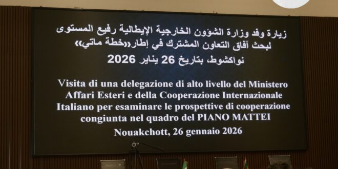 استقبلت العاصمة الموريتانية نواكشوط، خلال الأيام الماضية، وفدًا إيطاليًا رفيع المستوى يضم 42 شخصية من الدبلوماسيين ورجال الأعمال، في زيارة عمل تروم تعزيز التعاون الثنائي بين موريتانيا وإيطاليا، وذلك في إطار مبادرة «خطة ماتي» الهادفة إلى تطوير الشراكات الاقتصادية والتنموية مع دول المنطقة.